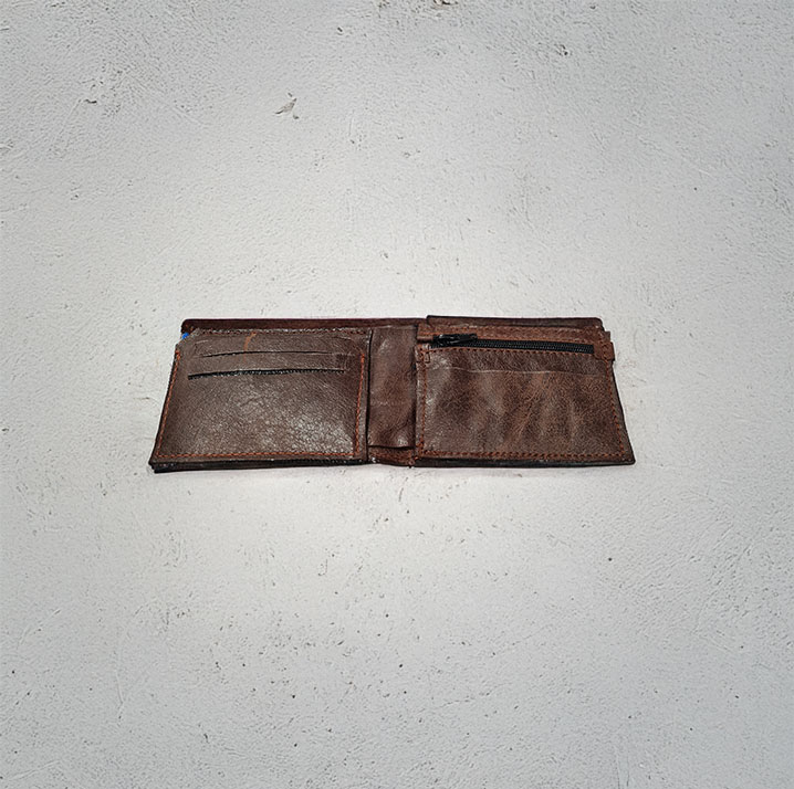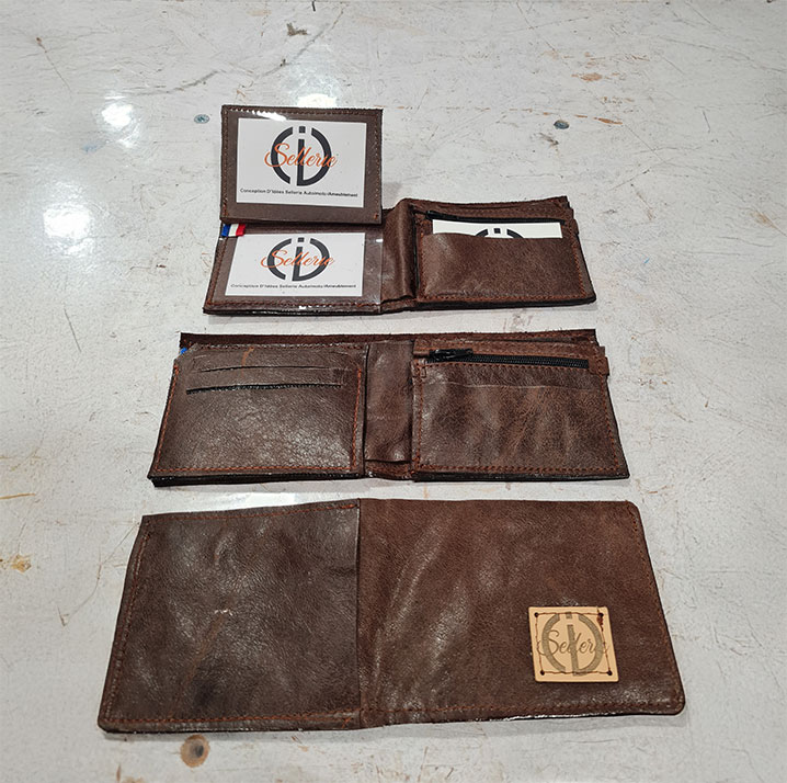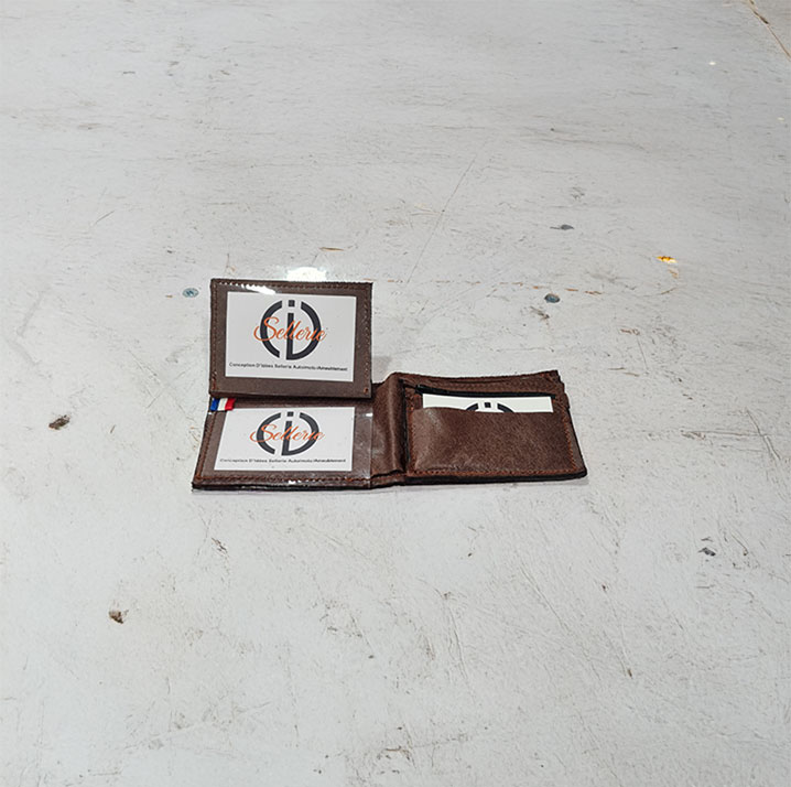 Ce portefeuille a été conçu pour ceux qui veulent un accessoire solide, utile et élégant. Grâce à son cuir de qualité et à ses coutures renforcées, il vieillit magnifiquement et s’adapte à votre usage. Il inclut un porte-monnaie zippé, des rangements pour cartes et papiers, ainsi qu’un compartiment à billets. Le détail tricolore discret et le logo embossé ajoutent la signature artisanale de Conception d’idées.