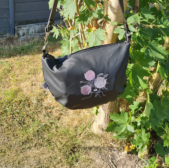 Sac Le Fulkérien cuir noir et broderie florale graphique