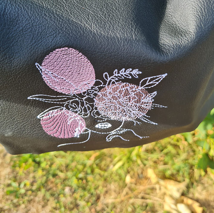 • Parce qu’il fait son effet : la broderie florale moderne crée un contraste fort sur le cuir noir.